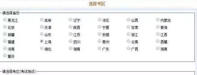 第5步:选择对应的考区,以及考试阶段,大部分考生是选择内地考生专业阶段报名。第6步:选择“省份”和“考区”!