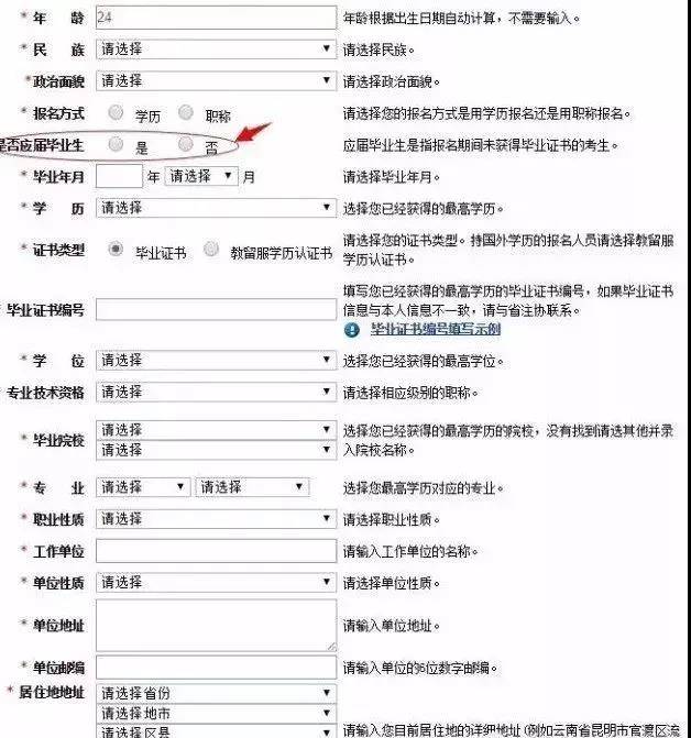 第7步:详细填写考生信息,如果你是应届生,请进入应届生页面进行填写!